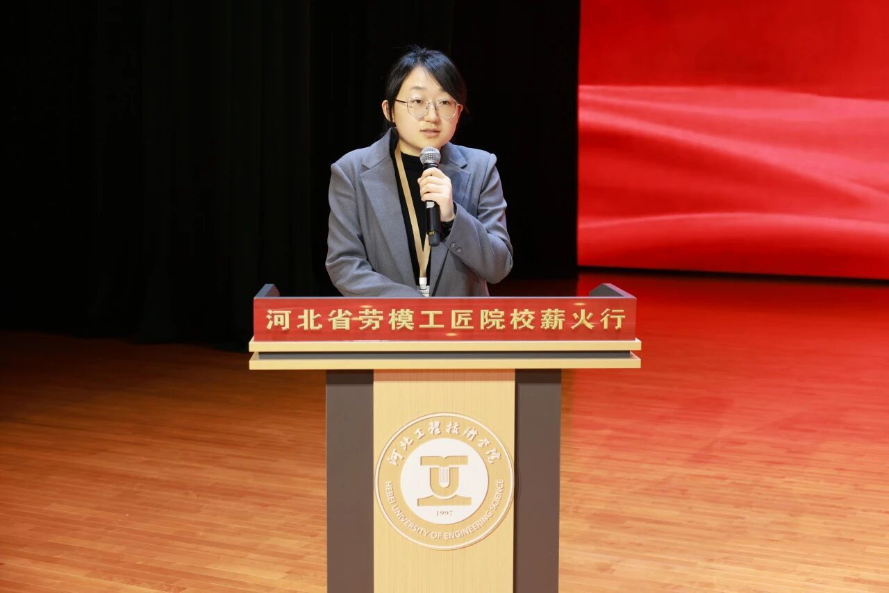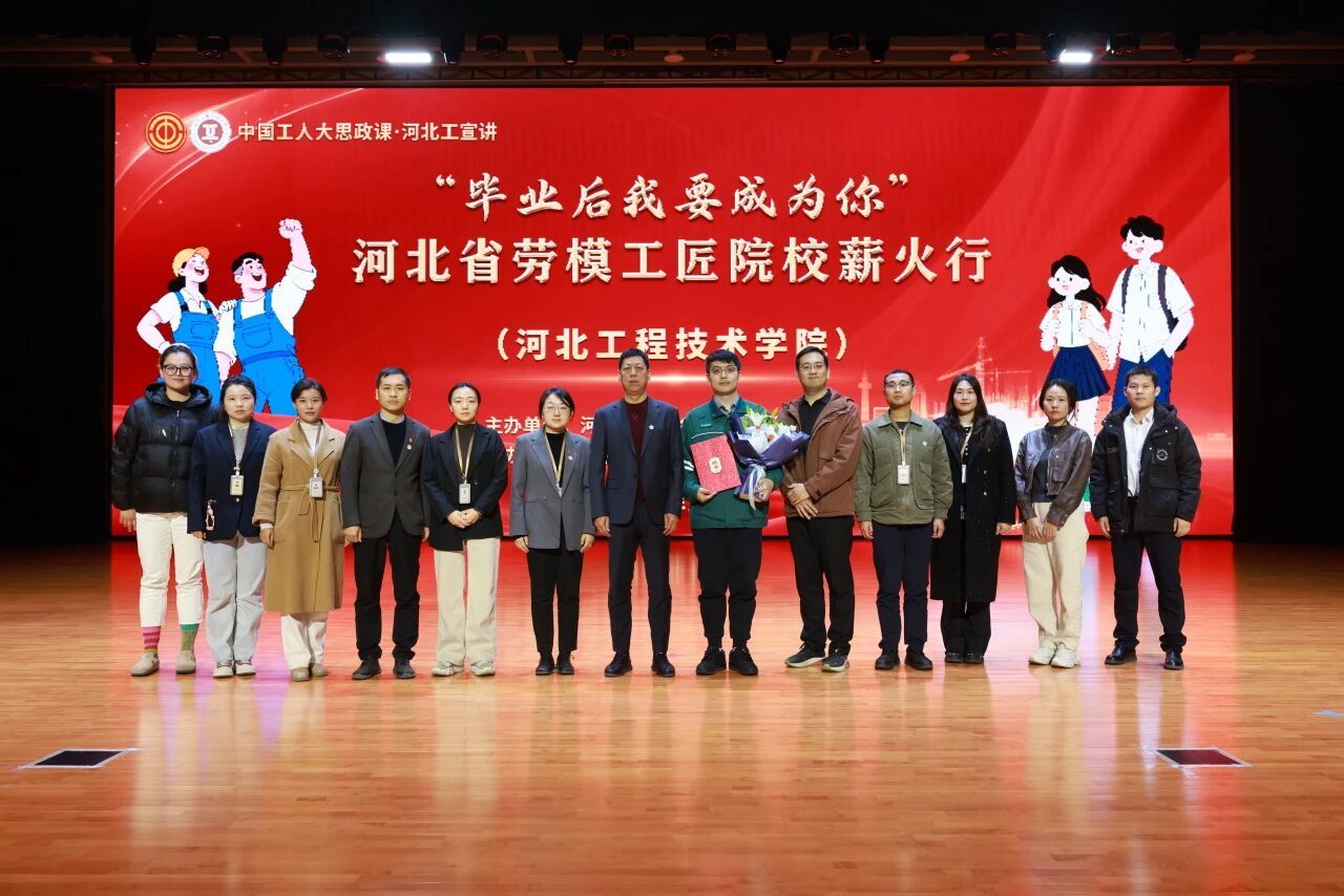 冬阳暖照传薪火,匠心筑梦启新程。11月28日,“毕业后我要成为你”——河北省劳模工匠院校薪火行活动在我校礼堂举行。校本部700余名师生现场参与,灵寿校区200余名学生线上同步收看,共同聆听京津冀大工匠、国家电网公司劳动模范常杰的亲身经历和感人故事,深刻感受到工匠精神的丰富内涵和时代价值,河北省总工会、河北工人报社等领导及我校党委书记常新平出席活动。活动由校工会主席李忆秋主持。