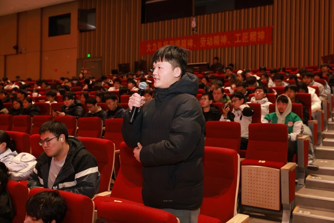 “您在工作中遇到的最大困难是什么?”“是什么信念让您能多年如一日的坚守在这一岗位?”……宣讲结束后,在互动环节中,同学们踊跃提问,在与劳模工匠的零距离交流中,真切感受其坚守初心的人格魅力与精益求精的精神风采。