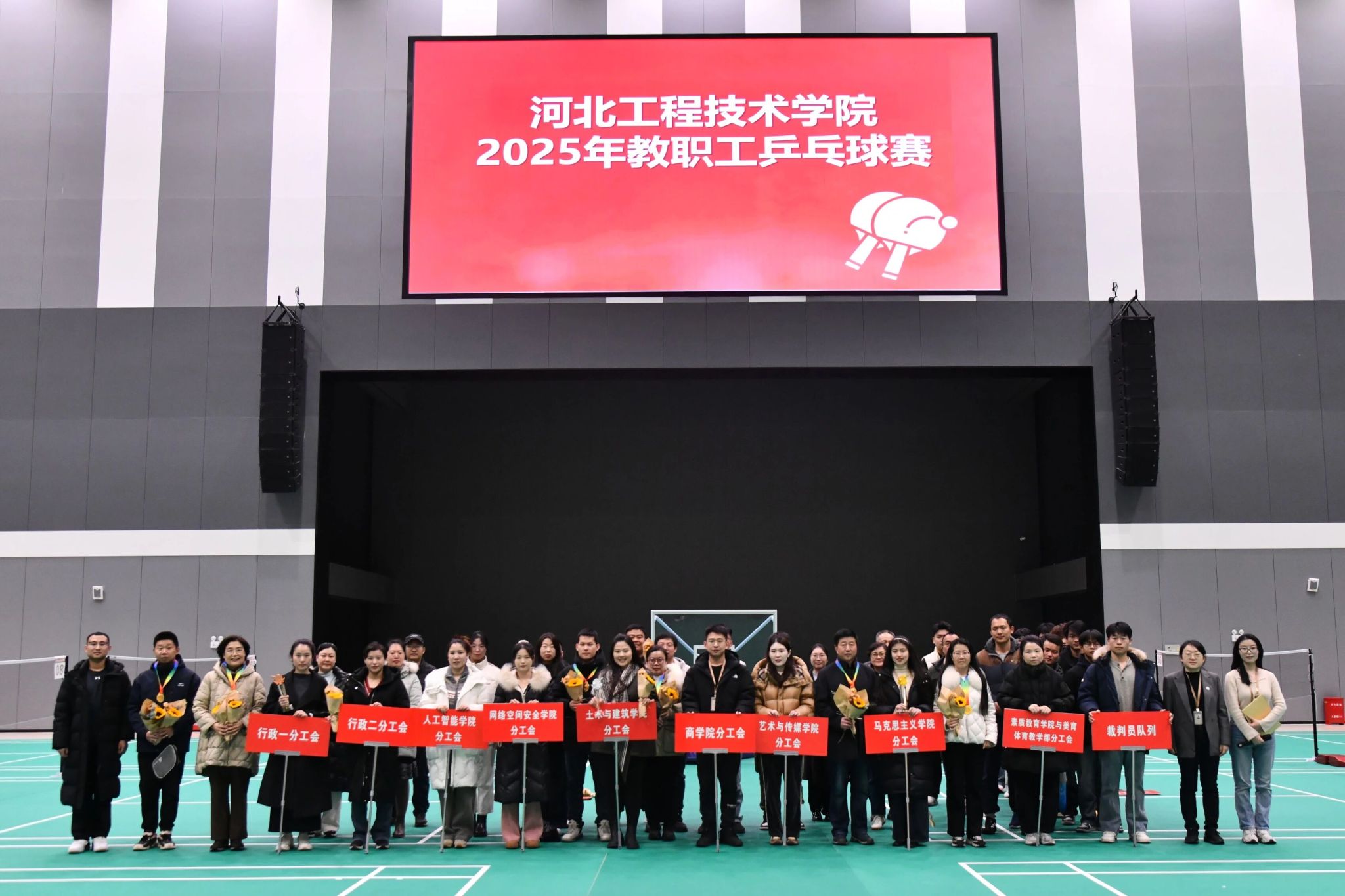 12月12日,我校2025年教职工乒乓球赛在校体育馆圆满落幕。校工会主席李忆秋、副主席陈广园及各分工会负责人、全体参赛教职工参加闭幕式,共同见证赛事收官。