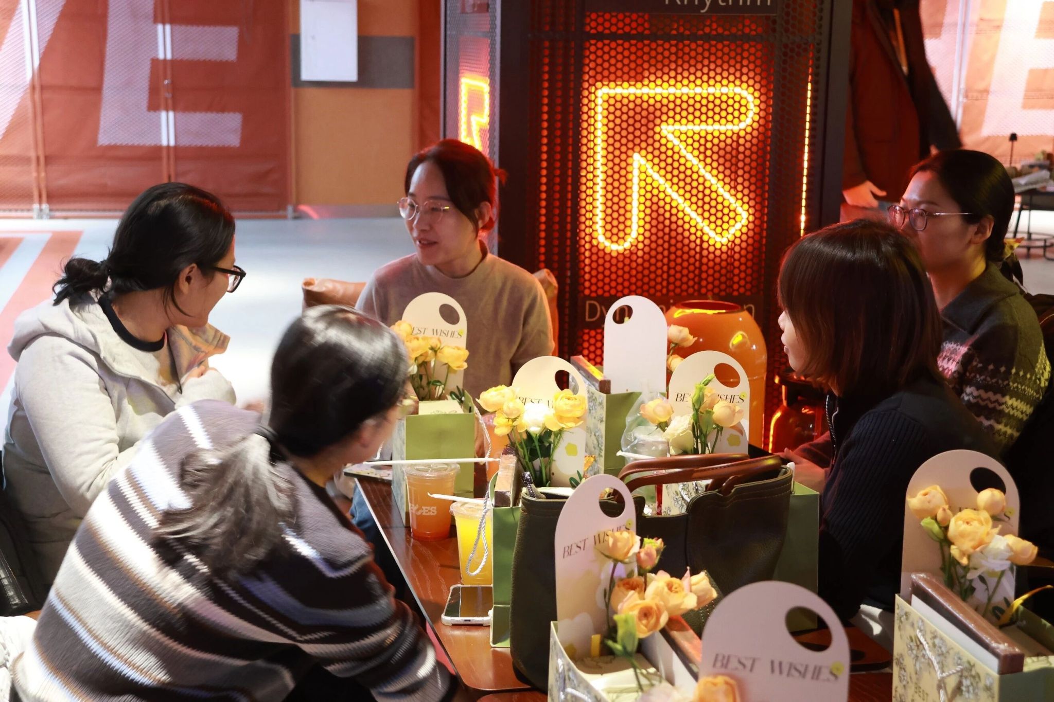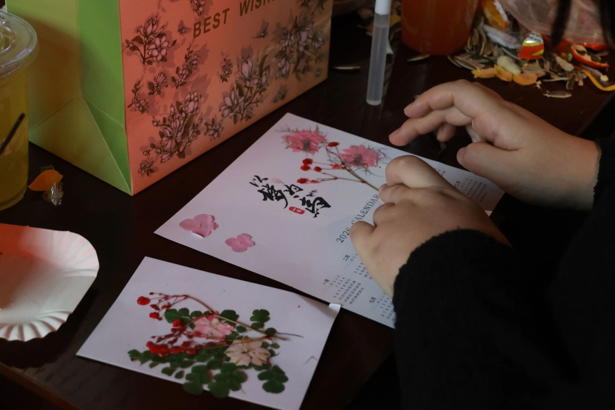 生日庆祝的欢乐氛围尚未消散,手工制作环节开启。在主持人的讲解中,老师们精心挑选干花、构思布局,打造属于自己的新年纪念。