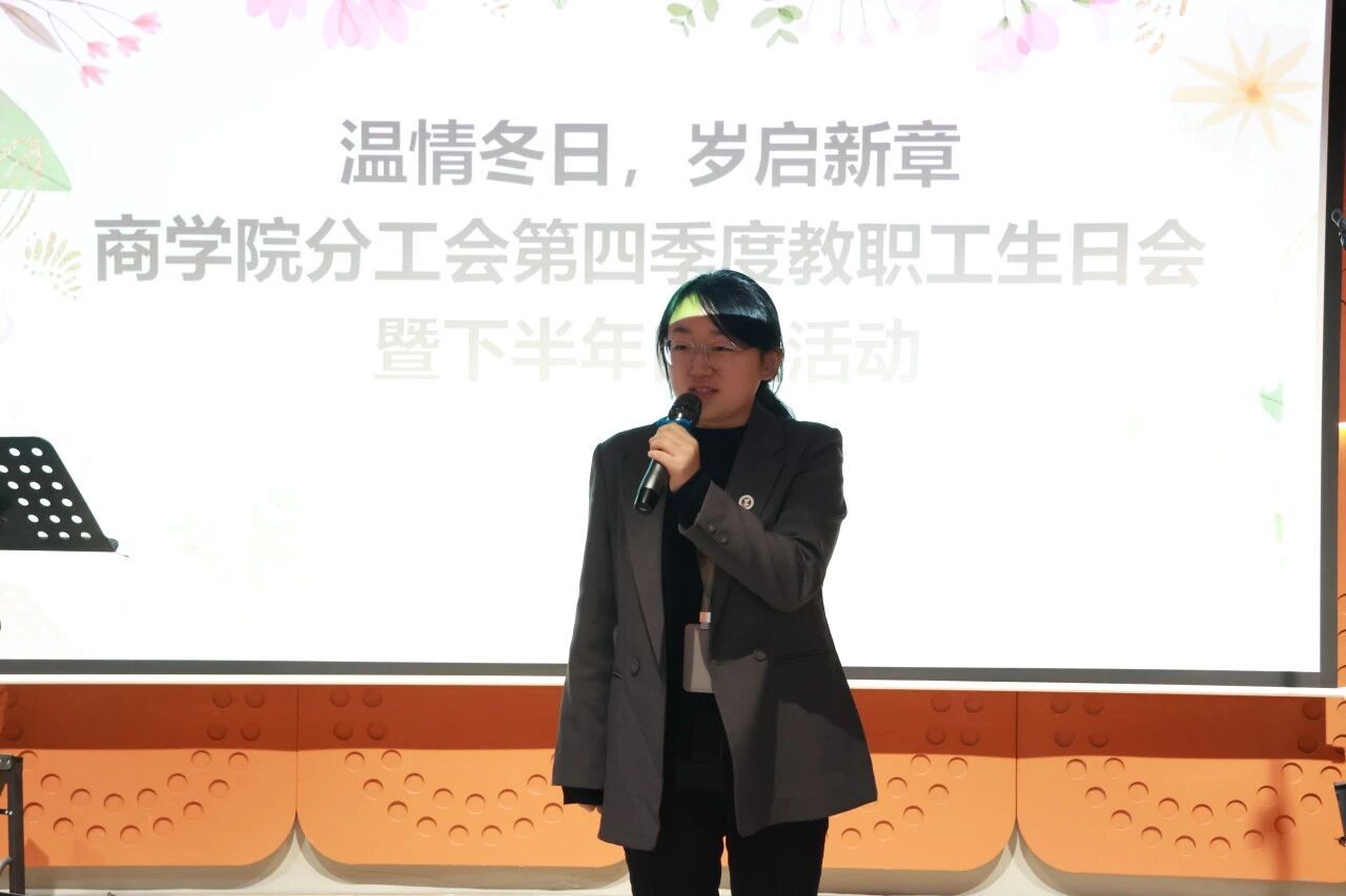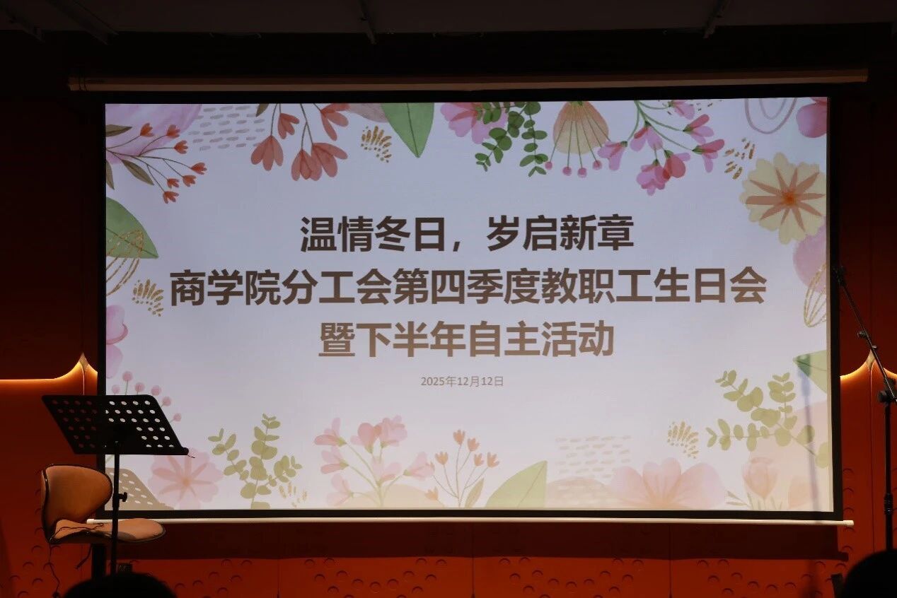 冬日暖阳聚情谊,新章待启赴征程。为增强教职工归属感和团队凝聚力,12月12日,商学院分工会在教工活动中心举办第四季度生日会暨下半年工会自主活动。校工会主席李忆秋、副主席陈广园及商学院党政领导班子、第四季度过生日教职工欢聚一堂,共庆生辰、共叙情谊。