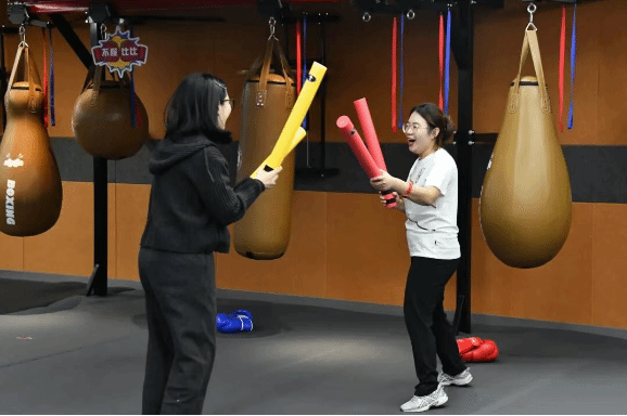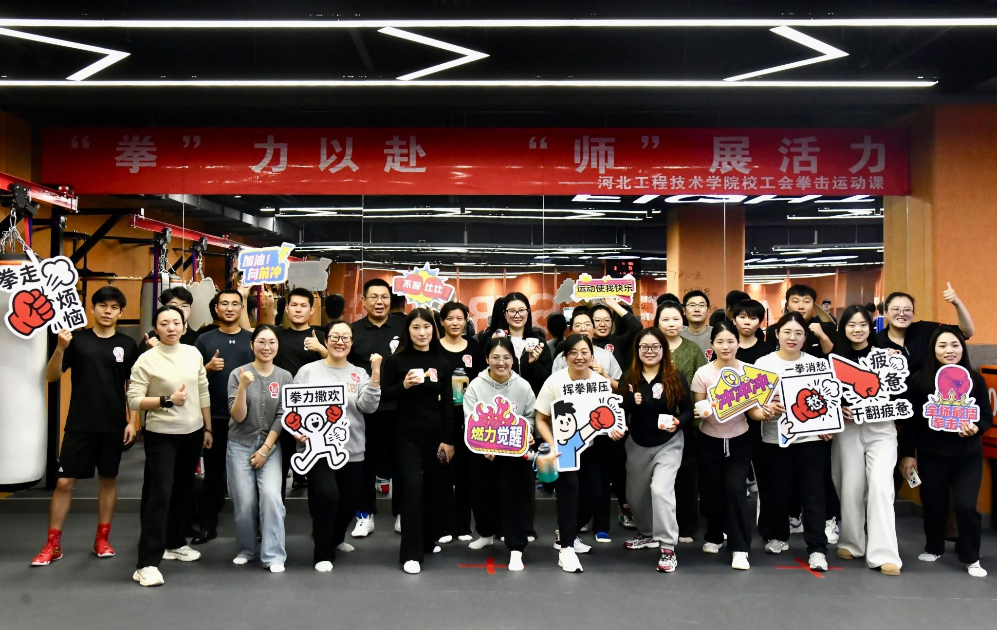 12月22日中午,教职工活动中心内气氛热烈,呐喊声与欢笑声此起彼伏,校工会第二期教职工拳击运动课程结课活动在这里举行。来自各分工会的近三十名教职工在趣味活动中展现学习成果,为这段充满力量与汗水的训练时光画上了朝气蓬勃的句号。